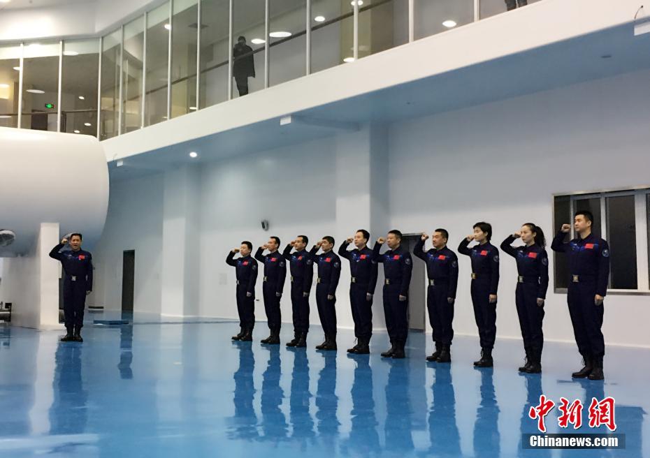 1月5日,在纪念中国人民解放军航天员大队成立20周年之际,包括11名曾经出征太空的中国航天员在内的全体航天员隆重举行重温入队誓词活动,表达为祖国载人航天事业拼搏奋进的信心斗志。万全 摄