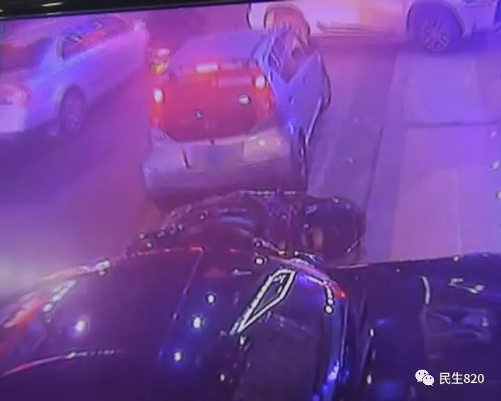 十几秒后,该车往后倒退了一下,将后方停放的两辆摩托车蹭倒。倒下的摩托车又压在了另一辆灰黑色的汽车左侧车门上。