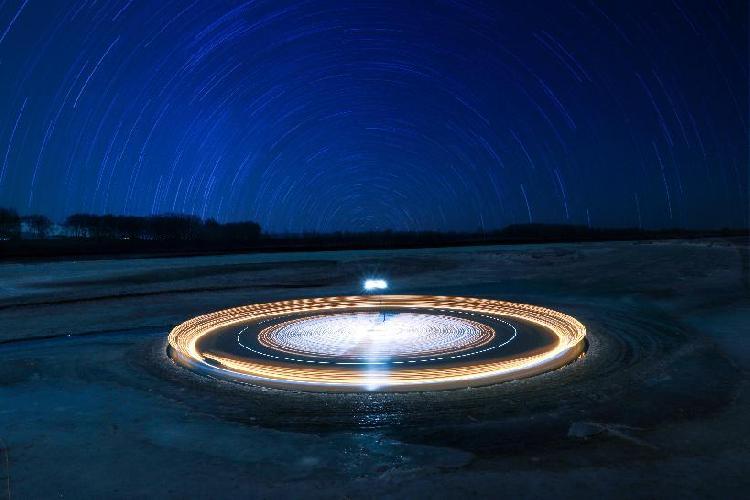 距离沈阳市区约百公里的辽河上,一个巨大的旋转冰盘成为了网红。