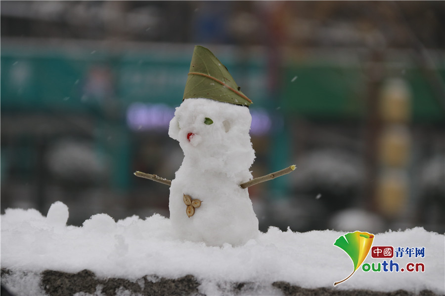 西安:市民堆出兵马俑雪人军团逗女儿开心