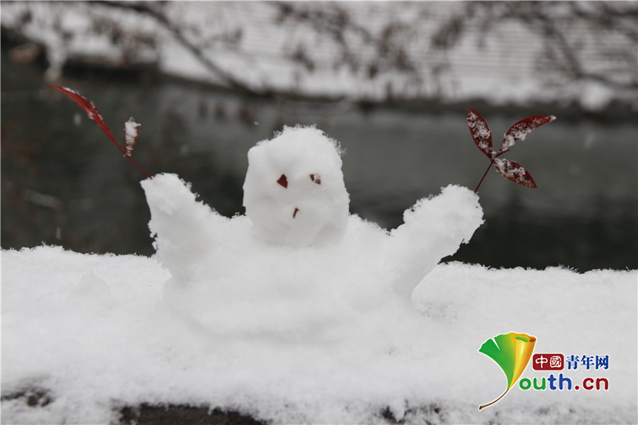西安:市民堆出兵马俑雪人军团逗女儿开心