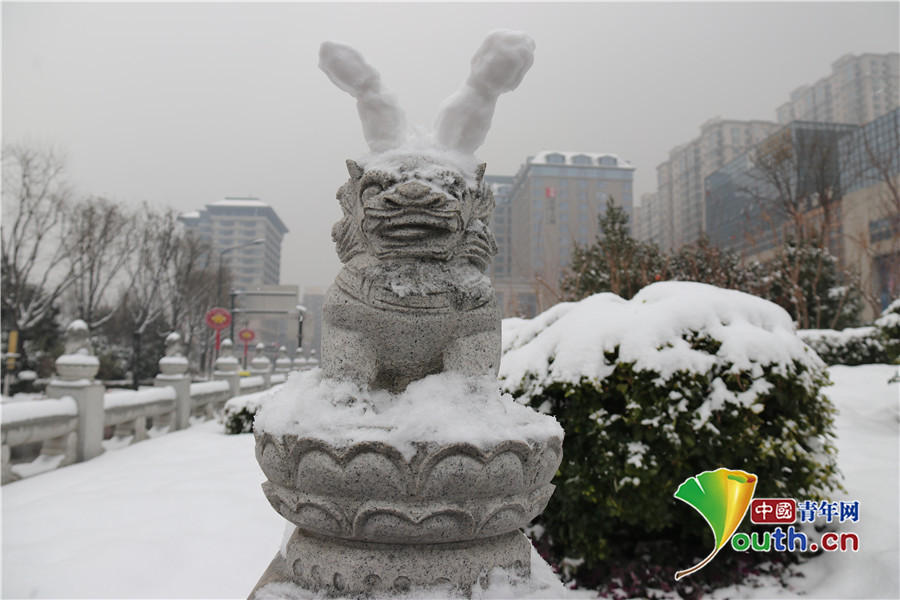 西安:市民堆出兵马俑雪人军团逗女儿开心