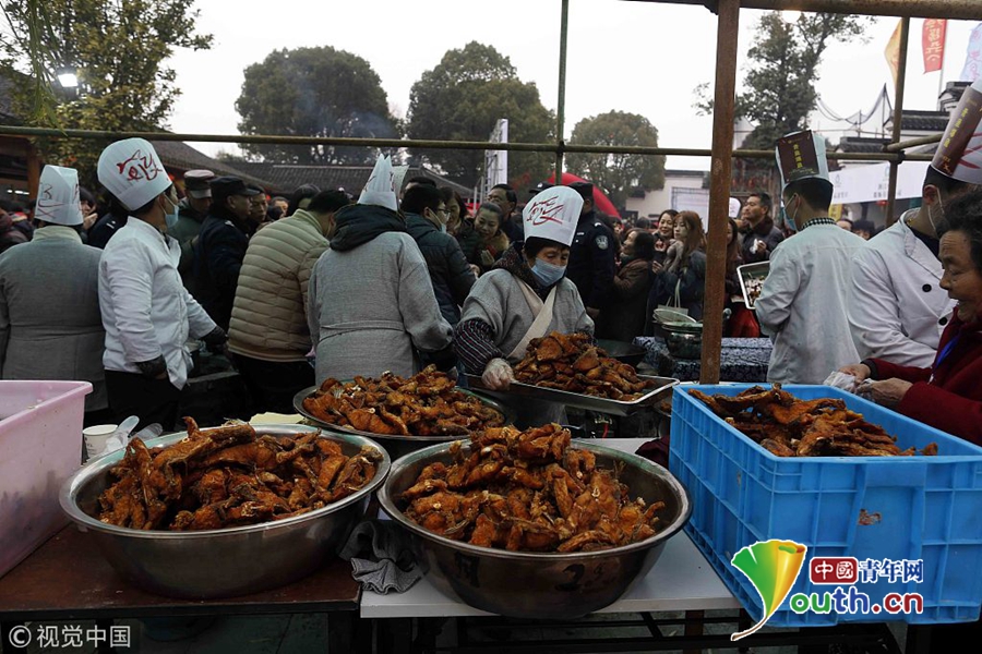 浙江湖州荻港古村大摆全鱼宴 1万人吃掉2万斤鱼