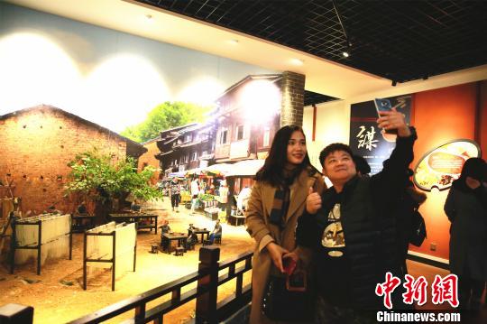 民众在螺蛳粉博物馆内自拍。 朱柳融 摄