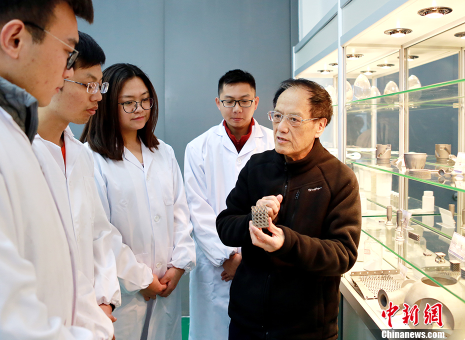 资料图为2017年3月3日,王泽山院士在讲解3D打印新型材料结构。 朱志飞 摄