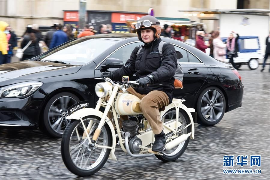 1月7日,一辆插着法国国旗的古董越野车驶过法国巴黎特罗卡德罗广场。当日,各式跑车、越野车、摩托车、自行车等老式车辆参加第18届老爷车冬季巴黎巡游活动。 新华社记者陈益宸摄