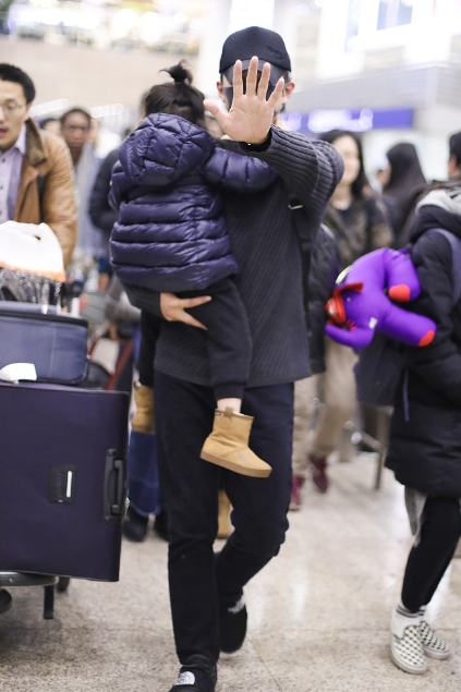 1月6日,上海,孙俪、邓超一家低调现身机场匆忙赶路,邓超伸五指拒偷拍保护孩子。