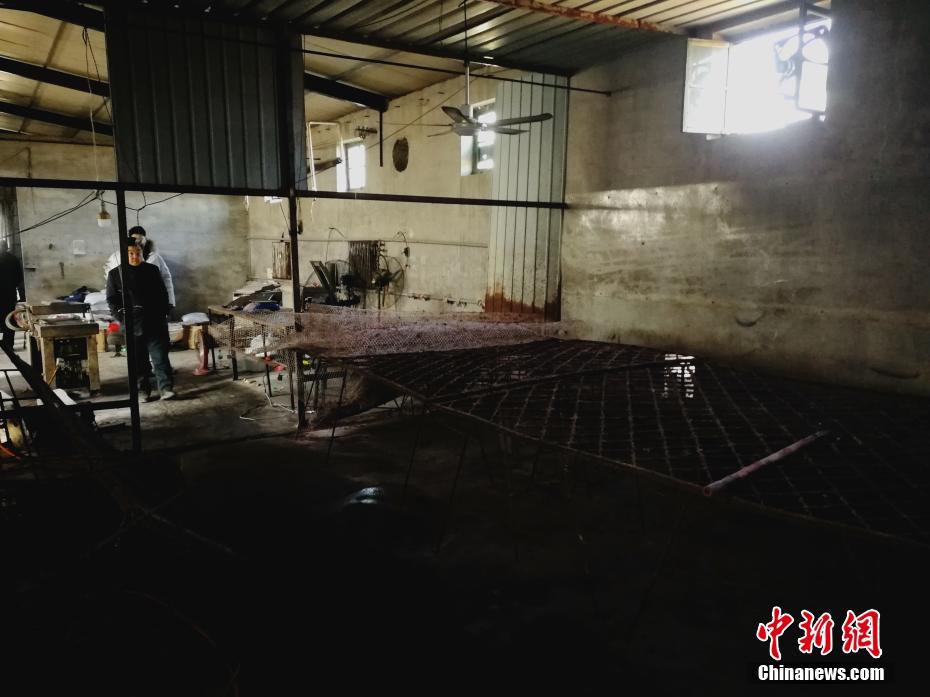 1月9日上午,执法人员接到举报后,来到河北河间市时村乡周楼村现场执法,通过检查认定这是一个加工假驴肉的黑作坊。 中新社记者 李晓伟 摄