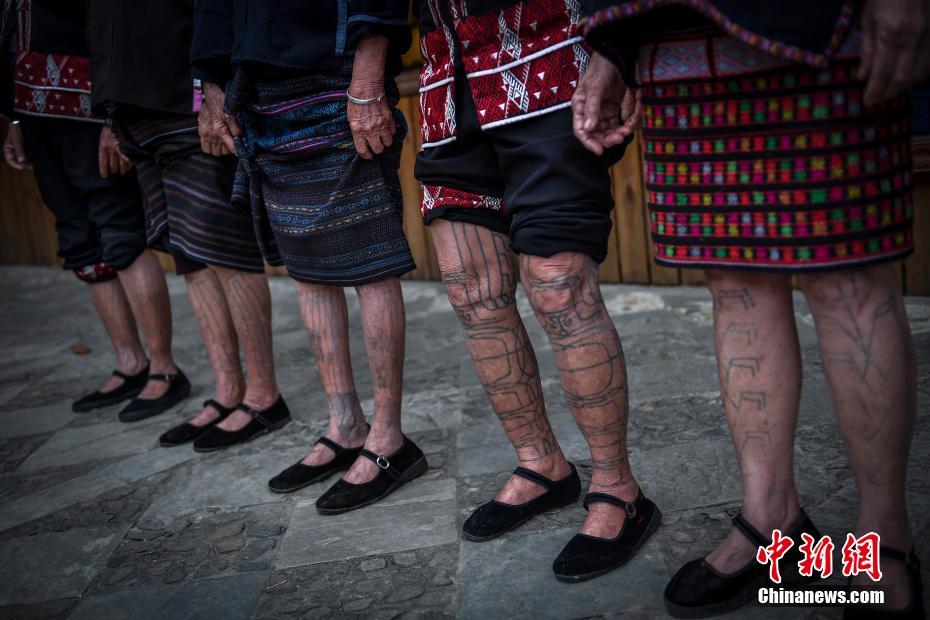 黎族女性文身的的范围包括面部、颈部、胸部、四肢等,图案则因为部落、氏族的不同而各不相同,因为黎族是个没有文字的民族,文身的图案就成为展示民族文化的方式。骆云飞 摄