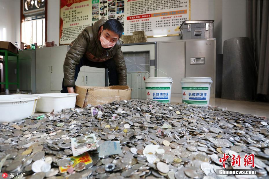 1月10日,四川省遂宁市公交公司清点中心工作人员正对2017年收入进行核算,他们从堆积如山的零钱中找出100多种残币,其中包括游戏币、儿童币、澳币、港币、无法兑换的外币甚至还有巧克力和山楂片。据该中心相关负责人表示,每年公司都要收到约10万余元的无效货币,为防止这些无效货币再度流入市场,公交公司都会根据规定进行处理,希望广大市民乘坐公交时不要贪图小便宜,丢掉诚信。刘昌松 摄 图片来源:东方IC 版权作品 请勿转载