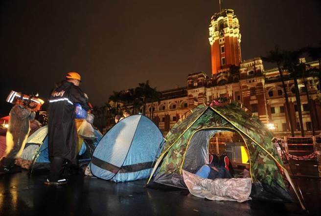“时代力量”助理群在凯道上搭起数个小帐篷。
