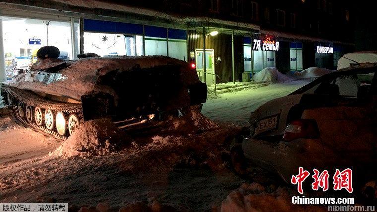 俄男子开装甲车闯进超市 只为抢一瓶酒