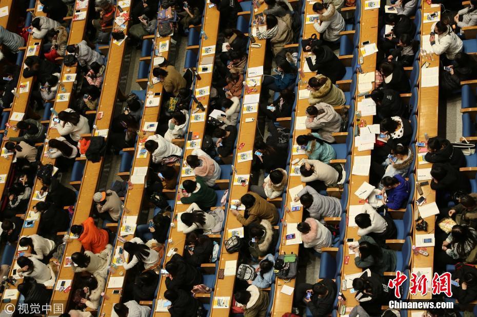 2018年新一轮考研拉开序幕,1月10日,在济南山东会堂内,众多考研族加入考研队伍中。据了解,考研刚刚结束不久,又现新一轮5000名考研族同上巨无霸大课的场景。 郑涛 摄 图片来源:视觉中国