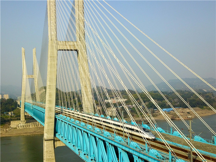 △1月9日,一列动车组测试列车通过新白沙沱长江特大桥