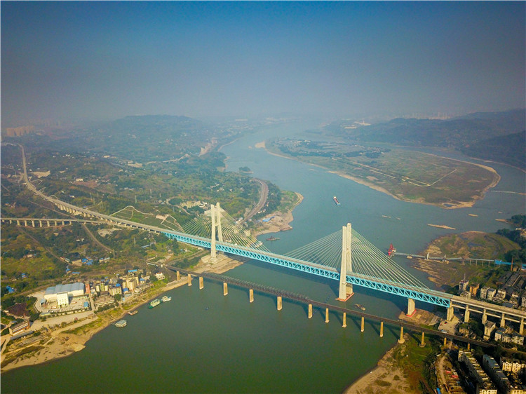 △1月9日拍摄的新白沙沱长江特大桥(后)和修建于20世纪50年代的白沙沱长江大桥(前)