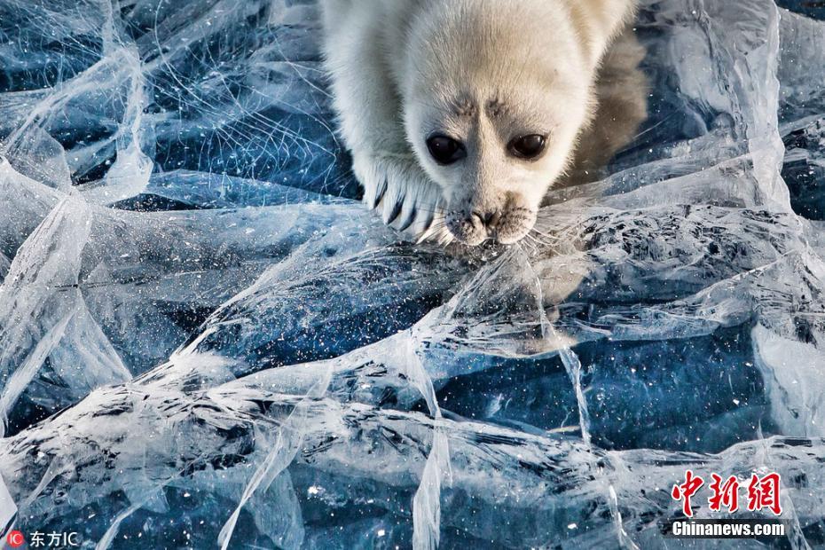 2018年1月11日报道(具体拍摄时间不详),俄罗斯奥尔洪岛,56岁的摄影师Sergey Anisimov在当地的贝加尔湖拍摄到一只可爱的海豹宝宝。画面中小海豹正在冰面上穿行,兴许是看见了摄影师,还很配合地向镜头招手,可爱极了。图片来源:东方IC 版权作品 请勿转载