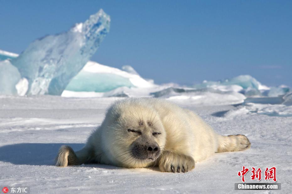 2018年1月11日报道(具体拍摄时间不详),俄罗斯奥尔洪岛,56岁的摄影师Sergey Anisimov在当地的贝加尔湖拍摄到一只可爱的海豹宝宝。画面中小海豹正在冰面上穿行,兴许是看见了摄影师,还很配合地向镜头招手,可爱极了。图片来源:东方IC 版权作品 请勿转载