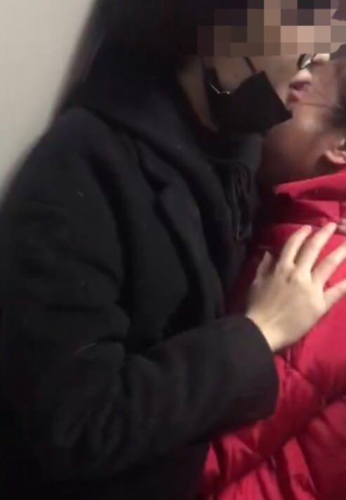 何某(红衣女子)在派出所内嚎啕大哭,并向小吴道歉。