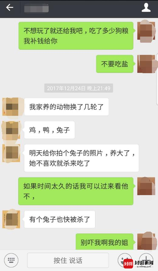 1月9日,两人因为多日的沟通没有结果,小吴有点生气,表示会把这个事情拿给更多的网友评理,把自己的遭遇听过微博发到了网上,贺莉知道后很“不爽”,1月9日,两人再次沟通时,贺莉说,“给你发一个火烤狗肉的视频”。