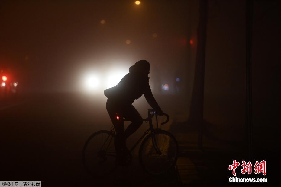 当地时间2018年1月11日,爱尔兰都柏林,民众冒着大雾天气出行。