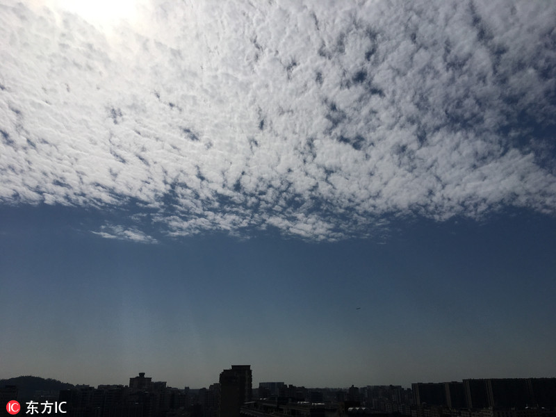 中午12点的时候,深圳上空更是美丽壮观,一条白云如同一条白洁的毛巾,连接天空东西两端,一端接着深圳凤凰山,一端接着珠江,似乎将蓝天分成两半,一南一北,登高楼顶,放眼千里,浩瀚无际,可谓之“拱门云”,着实美丽壮观。