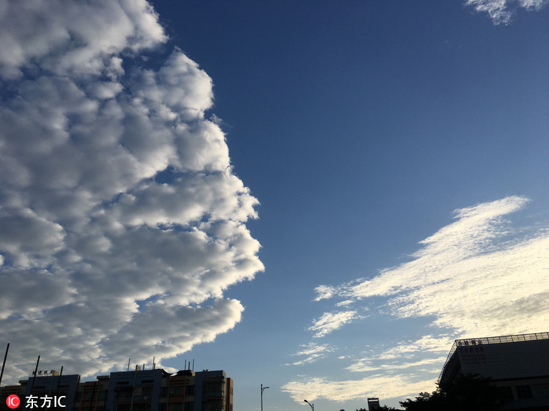 中午12点的时候,深圳上空更是美丽壮观,一条白云如同一条白洁的毛巾,连接天空东西两端,一端接着深圳凤凰山,一端接着珠江,似乎将蓝天分成两半,一南一北,登高楼顶,放眼千里,浩瀚无际,可谓之“拱门云”,着实美丽壮观。