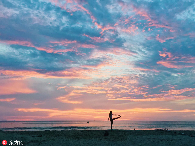 24岁的俄罗斯姑娘Ekaterina Terenina练瑜伽。