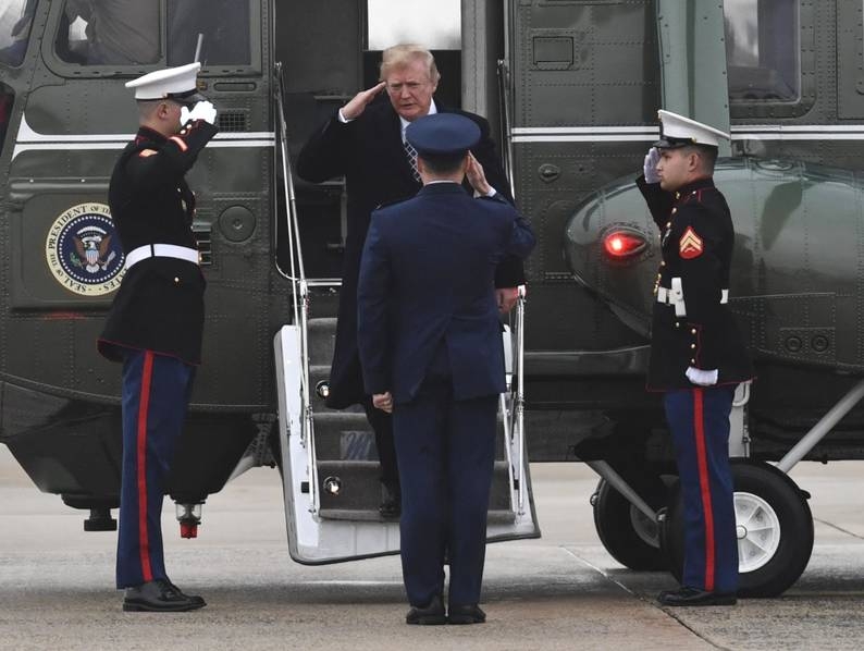 在11日,特朗普接受体检的前一天,他就表示,自己的身体健康状况非常稳定,还开玩笑说:“(体检)最好是好结果,否则股市也会不高兴。” 图:特朗普走下“海军陆战队一号”直升机,换乘“空军一号”。