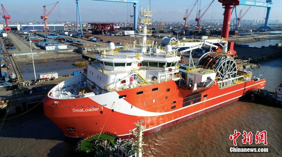 1月12日,在大马力拖轮的协助下,先进深海原油转驳船“SeaLoader1”缓缓从江苏启东中远海工码头驶出,前往海域进行试航。 陈福广 摄