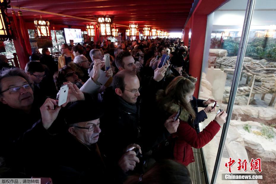 当地时间1月13日,首只在法国出生的大熊猫宝宝“圆梦”正式与公众见面。“圆梦”于2017年8月4日生于法国圣艾尼昂市博瓦勒野生动物园,爸爸妈妈是旅法大熊猫“圆仔”和“欢欢”。图为“圆梦”吸引了众多民众前来观看。