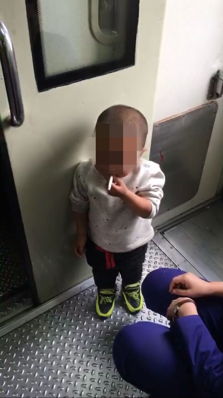 4岁男童列车上“熟练”抽烟 惊动乘警