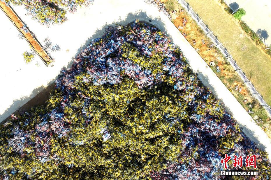 1月13日,福建省厦门市同安区,数万辆共享单车杂乱无章的堆放在一空地上,让人触目惊心。网友戏称此地为共享单车“坟场”。近来,由于共享单车野蛮式的发展,加上骑车民众参差不齐的素质,厦门大街小巷单车近乎泛滥成灾。从去年11月初开始,厦门市相关部门在全市范围内开展了共享单车清理工作,截至11月底,厦门市共清理各类共享单车逾十万辆,接近企业在当地投放单车总量的三分之一。许多民众认为这是对资源的极大浪费,管理部门与单车公司应该进行有效沟通,制定更好的管理办法,让单车真正便捷于民。 王东明 摄