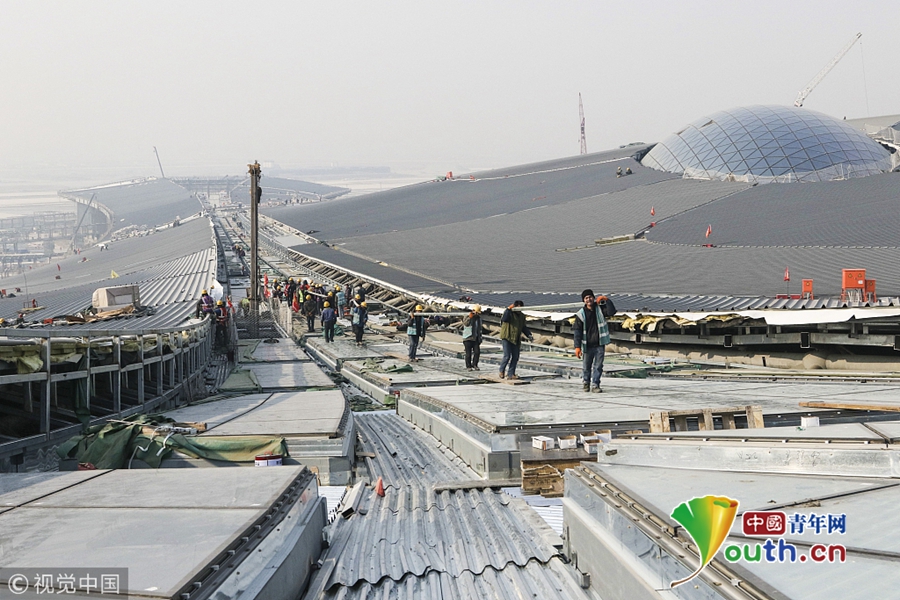 北京新机场航站楼实现功能性结构封顶