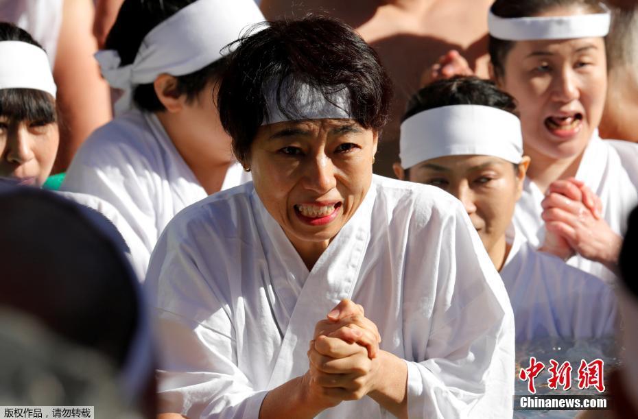 当地时间1月14日,约百人在日本东京铁炮州稻荷神社泡冰水,参加冬季净化仪式,祈祷新年健康。
