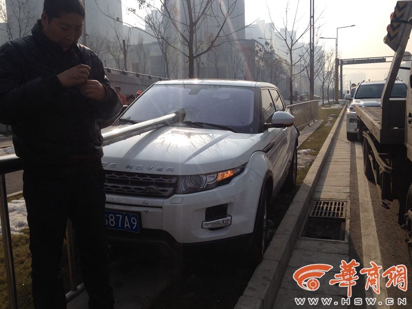 司机开车冲上道沿撞上护栏 护栏从前插到后