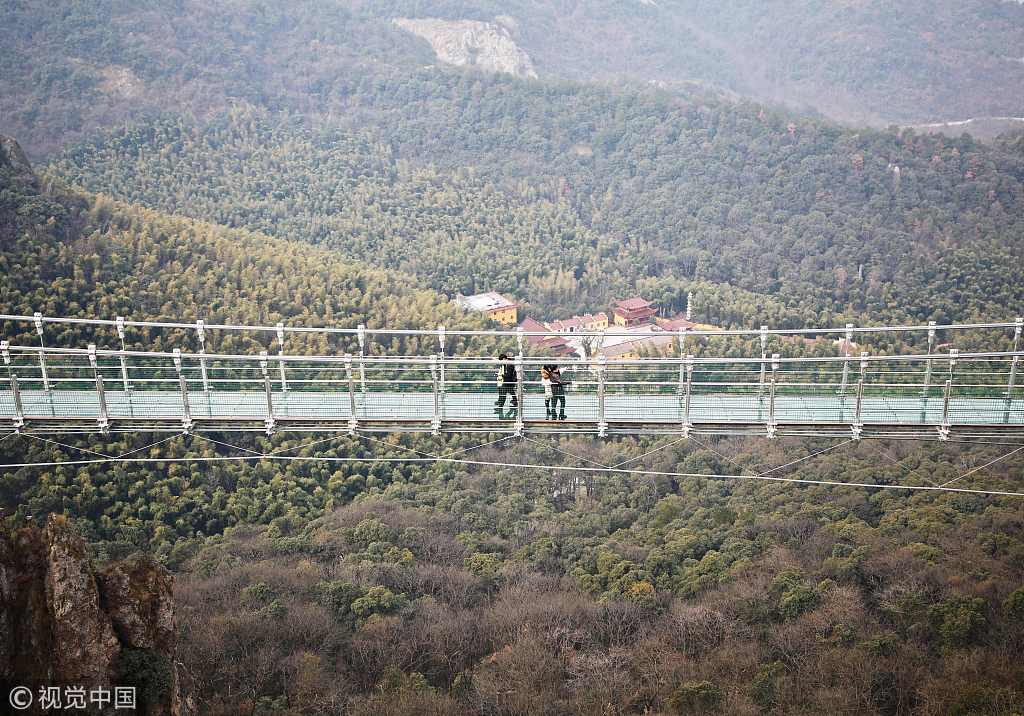安徽芜湖高空玻璃桥 游客体验“步步惊心”