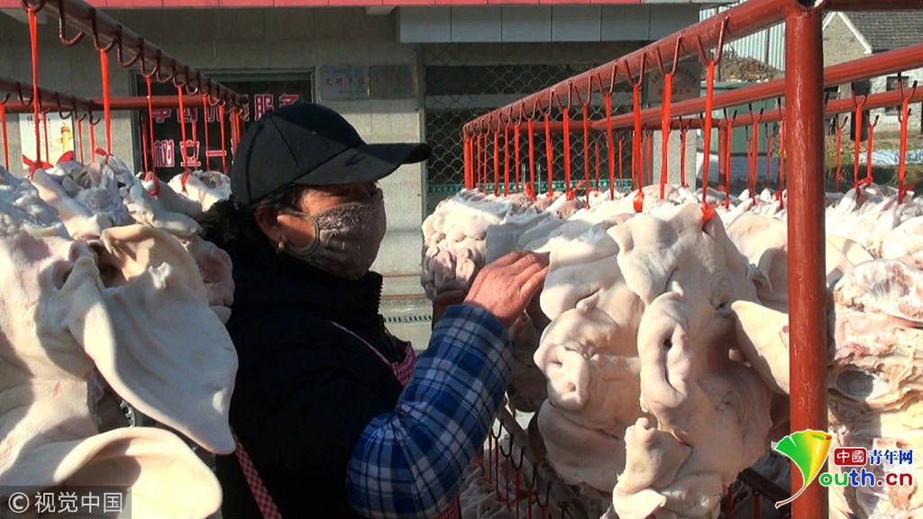 江苏盐城年味渐浓 满街尽是咸猪头
