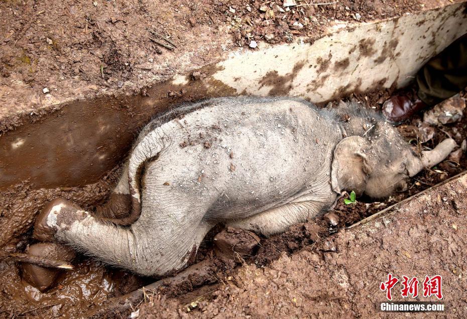 云南西双版纳一幼象跌落水沟 未脱离生命危险