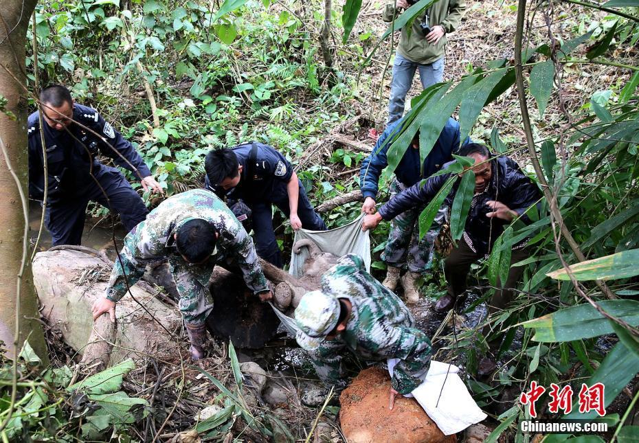 云南西双版纳一幼象跌落水沟 未脱离生命危险