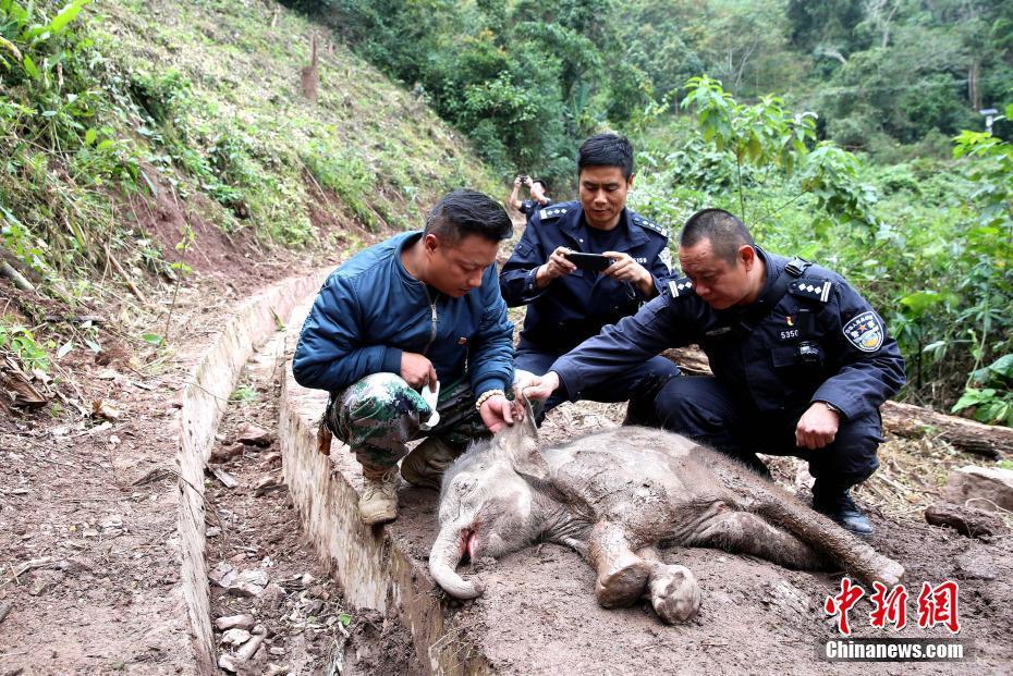 云南西双版纳一幼象跌落水沟 未脱离生命危险