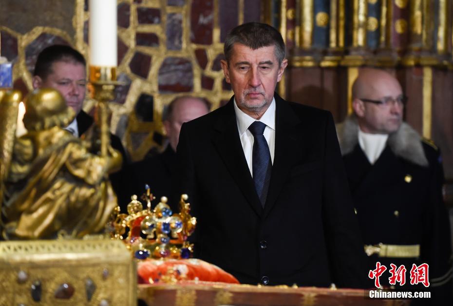 捷克总统米洛什·泽曼同其他六名掌管钥匙的大臣,为保存着皇冠的密室解锁。