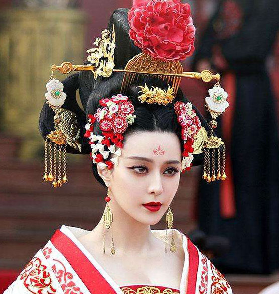 范冰冰近两年的作品《武媚娘》《赢天下》中都有十分华丽的头饰造型。看起来十分奢华,有的网友调侃,看着就脖子痛!
