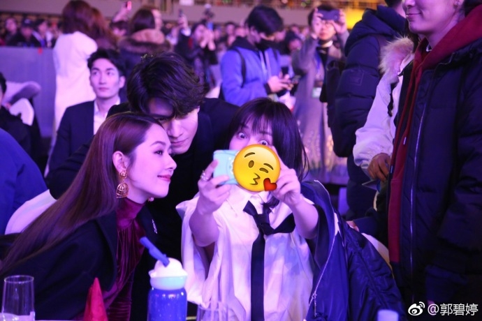 1月16日,郭碧婷在微博po出一组庆生照并配文:“今天收到满满的暖,满足啦。”照片中,郭碧婷庆生也不忘自黑,与吴昕同做鬼脸,逗趣合照。