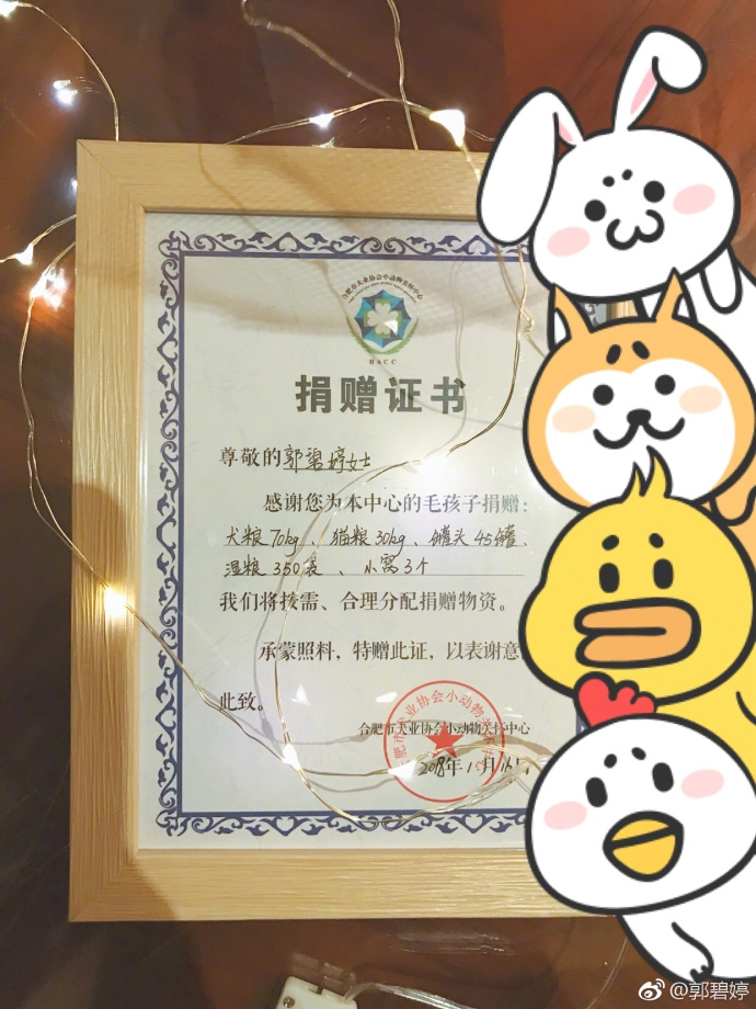 1月16日,郭碧婷在微博po出一组庆生照并配文:“今天收到满满的暖,满足啦。”照片中,郭碧婷庆生也不忘自黑,与吴昕同做鬼脸,逗趣合照。