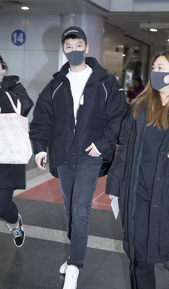 盛一伦黑白配穿搭现身机场 简约低调率性行走