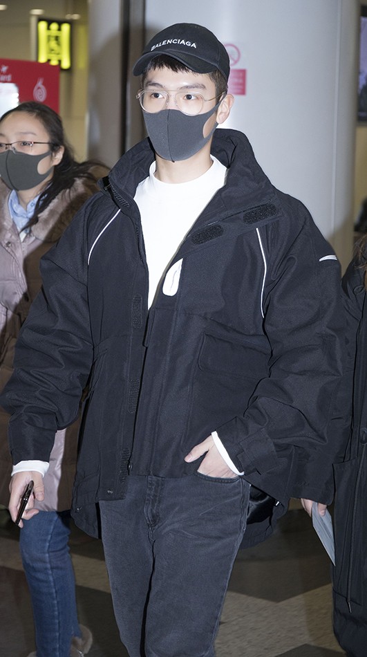 盛一伦黑白配穿搭现身机场 简约低调率性行走
