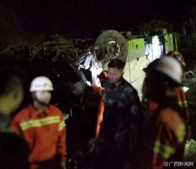 广西载54人超载客车追尾翻出高速 3人死亡