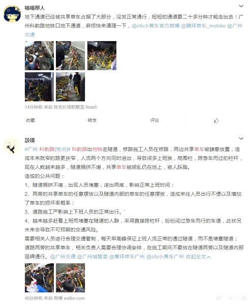 广州地铁站口被共享单车围堵后