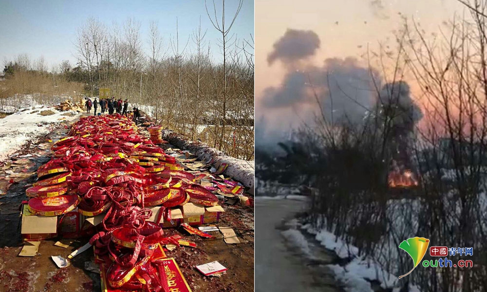 安徽:万箱受损爆竹烟花集中销毁现场