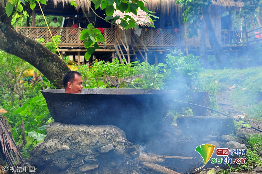 探秘菲律宾奇葩热水浴 躺在大锅中“炖”自己